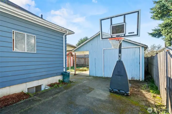 Opportunity truly knocks at this Tacoma home filled with potential and ready for your vision to bring it to life. Main floor with high cellings includes living and dining areas, eat-in kitchen, two bedrooms, 1.5 baths, and laundry room. Full basement with more high ceiling height offers substantial additional square footage ready for reconfiguration, added living space, or expanded storage. Property includes a detached one-car garage and storage shed. Located just minutes to I-5, Tacoma Mall, transit, and major services. Property is being sold as-is. Buyer to verify all details to their satisfaction. Bring you vision and restore this gem!