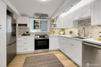 This beautiful 2 Story Home sits on a tree lined street within walking distance to neighborhood schools, restaurants, and parks. Charming details, thoughtful updates, amazing location and a private backyard sanctuary with spacious shed will be sure to impress. Updates include: complete kitchen remodel with granite counter tops, under cabinet lighting, brand new appliances. Living room overlooks the front garden and street and light flows through the large windows. New Laminate downstairs&new carpet upstairs. Bath looks beautiful with fog free lighted mirror, new toilet and vanity. New paint inside&out. New electrical panel. Fully fenced yard, with well manicured garden areas and picture perfect brick patio.