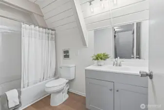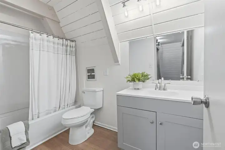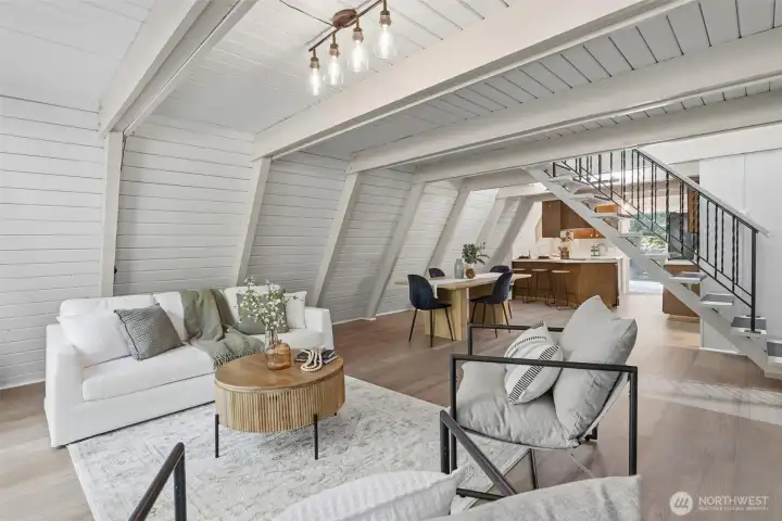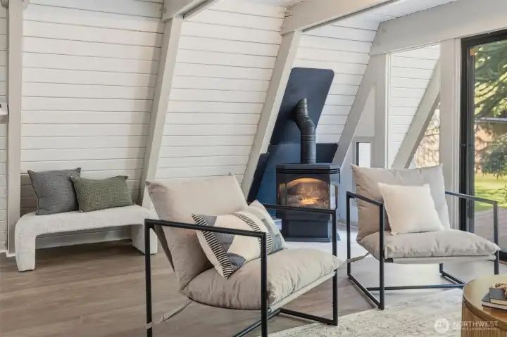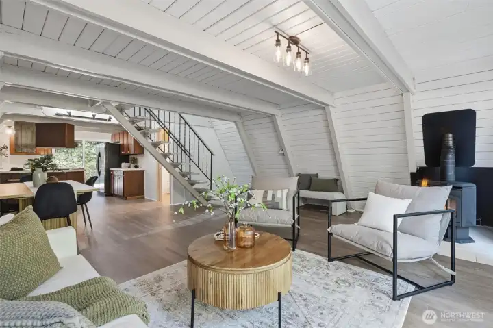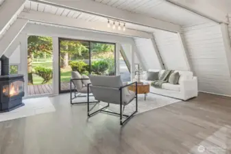 Tucked away on just over ½ an acre, this charming A-frame offers the perfect blend of privacy, character, and modern updates—just minutes from the freeway. The cozy 2-bedroom home has been refreshed with new interior and exterior paint, new LVP flooring, an all-new bathroom, updated lighting, and a warm, inviting fireplace. Outside, the partially fenced property shines with a detached garage with an additional full bathroom, covered carport parking, metal-covered RV or boat parking, a storage shed, and a paved driveway, perfect for endless hobbies and outdoor toys. Surrounded by nature yet close to it all, enjoy nearby Little Mountain Park, the Skagit River, and lakes nearby. Private, versatile, and full of charm, this property is ideal as a full-time home, weekend getaway, or Airbnb opportunity. Bedroom virtually staged.