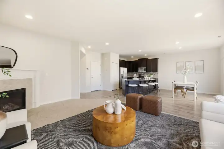 Exceptional living in highly desirable Stone Briar! Built in 2017, this D.R. Horton resale offers 2,038 sq ft with 3 bedrooms + office and 2.5 baths, featuring a bright, open-concept layout designed for comfortable modern living. Extended laminate flooring, crisp white millwork, and crown molding enhance the granite kitchen with island, gas range, stainless appliances, and walk-in pantry. Energy-efficient upgrades include tankless hot water and a natural gas furnace. Move-in ready with all appliances included. The spacious primary suite features a private bath and walk-in closet. Enjoy the fully fenced backyard with patio —ideal for entertaining or relaxing. Two-car garage with added storage. Situated on a corner lot with ample parking, conveniently close to Lake Stevens schools, parks, and commuter routes and Costco.