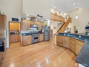 5,276SF, 3 bed, 2.75 bath custom home w/ a fully finished daylight basement on a quiet and secluded 5 acres! Open/great room concept offering a large living space w/ hardwood floors, free standing Country wood stove, soaring vaulted ceilings, and wrap around deck access. Gourmet kitchen w/ Viking SS appliances, slab granite countertops, pot filler above range, hickory cabinets, huge island with bar seating, breakfast nook, and a butler's pantry w/ walk-thru to the spacious dining room. Vaulted primary suite on the main w/ hardwood floors includes private bath, jetted & air tub, custom tile walk-in shower and walk-in closet. Large bonus room, up along with a full bath and 2 vaulted guest bedrooms. Main floor office. Utility room w/ tile floors & mud sink. Oversized rec-room and additional office space in the daylight basement perfect for hobbies, crafts or just hanging out. Dual heating systems w/ 11-zone hydronic floor heat throughout (including all of the basement) High efficiency, inverter mini-split/heat pump system that also provides AC. High efficiency water heater installed in 2021. Large wrap around Trex deck plumbed for BBQ. RV parking with water/electricity connections and dump. Circular driveway. Wired for a generator. Extra deep 2-car attached garage plus detached woodshed that doubles as a garden shed. Much to see, see you there!!