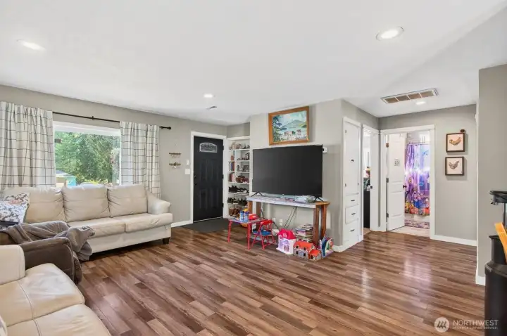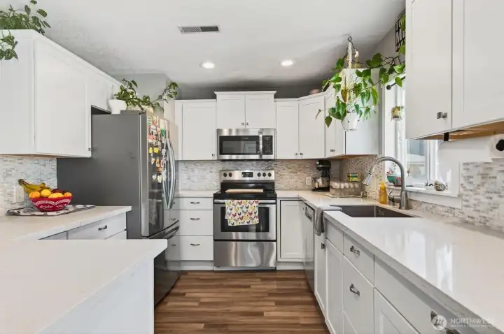 Beautiful, remodeled home with three bedrooms, 1.75 baths in a wonderful area. Inside offers a bright and open living area includes laminate floors and wonderful natural light. Beautifully updated kitchen with quartz counter tops, stainless steel appliances, and modern cabinetry. Updated tile baths, vaulted master bedroom w/walk in closet, forced air heating/cooling, newer plumbing and electric. Easy access to backyard via sliders to your private deck, 24x24 shop, and firepit all sitting on over 1/2 acres of parklike setting; great for entertaining. Close to schools. shopping, and I-5 for easy commutes. This is a must see!