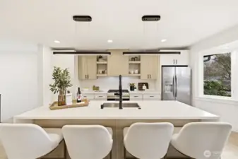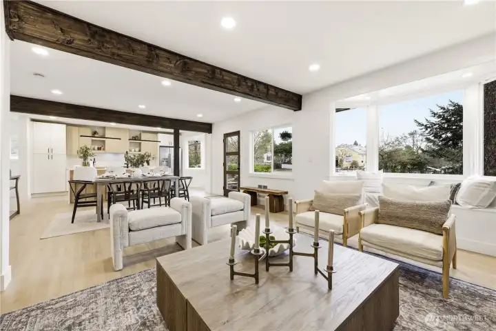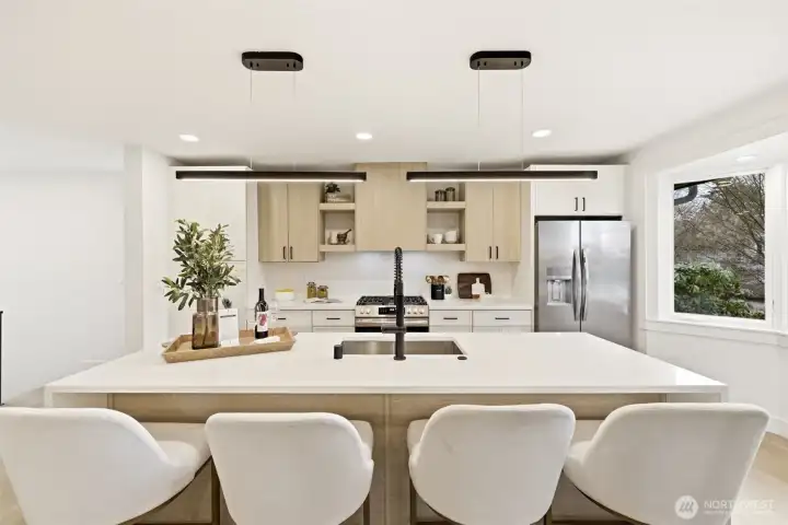 West Seattle Modern Craftsman with loads of character and charm. This home lives large with 5 bedrooms and 3.25 bathrooms! Step into this reimagined open floor plan and enjoy exceptional living. The kitchen boasts a stunning quartz waterfall island, stainless appliances and gas range. The bay windows fill the living room with light making it perfect for entertaining and relaxing. The gorgeous fireplace accent wall is a showstopper. The main floor has 2 bedrooms, one could be an office with walk out deck to the dreamy backyard. A full bath completes the main floor. Head upstairs to a landing that makes a perfect space for a workstation or cozy nook. A spacious primary suite includes deck with peekaboo views of the Olympics and Puget Sound, a huge walk-in closet and ensuite bath. Don't miss the LOFT from the pull-down ladder for a bird's eye view and ample storage. 2nd Floor includes vaulted ceilings, 2 additional bedrooms and a 3/4 bath. Find the secret door behind bedroom bookshelf! The basement features a fabulous rec room to watch the big game or movie night. Mix up tasty beverages and snacks in the bar/kitchen. A bonus flex room is perfect for office, playroom, gym or yoga. Basement also has a 3/4 bath and laundry. Big entertaining backyard with a patio, one car garage and 2 additional parking spaces off the alley. Walk to WS's favorite, The Birdhouse Coffee Shop. Close to parks, shopping and restaurants. This home has it all!