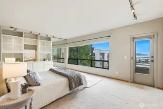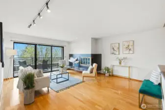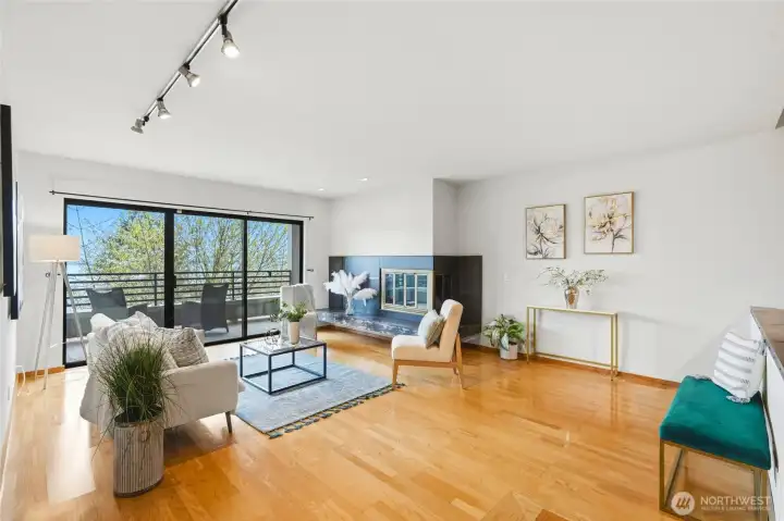 Stunning view condo with expansive deck & walkable location. Experience breathtaking views from this bright, 2-bedroom, 1.75 bath condo. The open floor plan is illuminated by natural light and opens onto a large deck - perfect for seamless indoor-outdoor living. Home features: *Living room: a sunken living room with cozy wood burning fireplace flows into the dining area. *Full kitchen: features ample storage, appliances and plentiful counterspace. *Primary room: a massive bedroom with a gorgeous sound view and deck access. The primary bathroom features dual shower heads, dual sinks with plenty of vanity storage and a large walk in closet with plenty of drawers of hanging space. Exceptional amenities & location: *2 assigned parking spaces + 4 visitor spots *2 private separate storage units in the bedroom: 1 in secure garage, 1 on 2nd floor. *Walk to shops, cafes, restaurants, grocery stores, Climate Pledge Arena, Elliot Bay waterfront, Kerry Park, Centennial Park and play tennis at Kinnear Park from your front door.