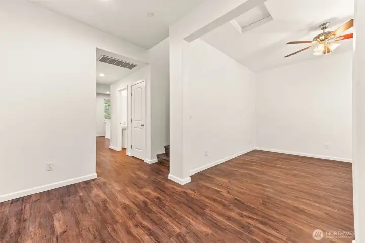 Tucked away at the end of a quiet cul-de-sac and bordering a serene greenbelt, this West Side home offers space, privacy, and a highly functional layout. The main level welcomes you with a versatile office or flex space just off the entry—ideal for working from home, hobbies, or playroom. The kitchen anchors the main floor with granite countertops, stainless steel appliances, and a generous walk-in pantry, opening seamlessly to the living area for easy everyday living and entertaining. Upstairs, all four bedrooms are thoughtfully positioned, including a spacious primary retreat with a five-piece ensuite. An additional full bath, convenient upper-level laundry, and a bonus space complete the second floor, offering room to spread out. The fully fenced yard backs to greenery and provides a private outdoor setting with a covered patio perfect for year-round enjoyment. Ideally located in the Olympia School District, near parks, trails, shopping, dining, and freeway access.