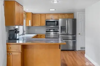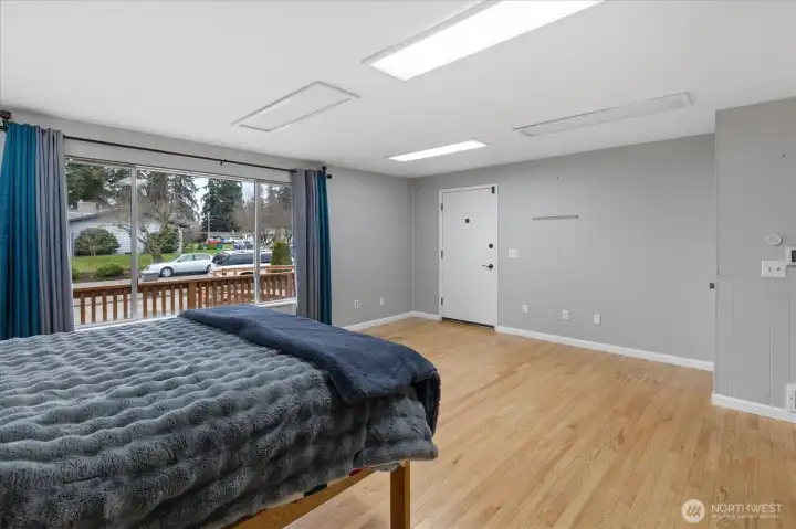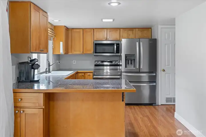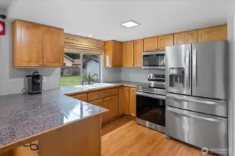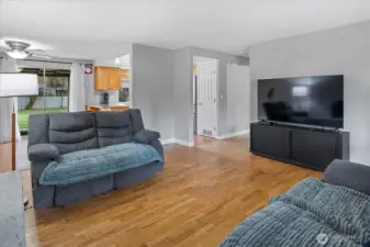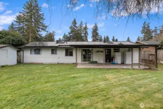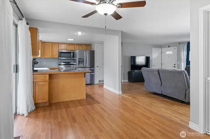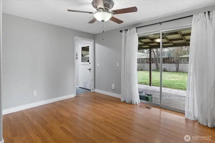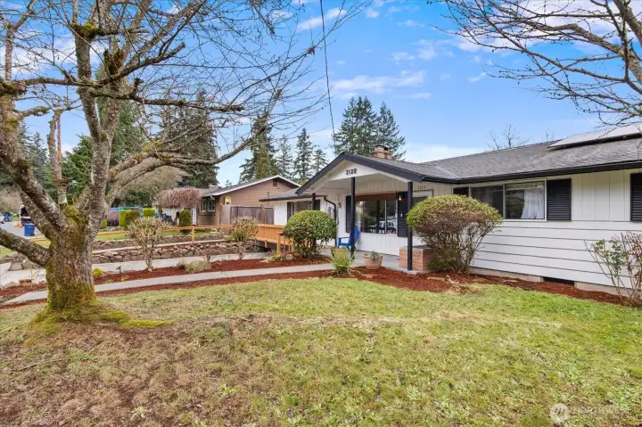 Welcome home to this charming three-bedroom rambler in the desirable Forest Villa community. The inviting living room features hardwood floors, a cozy wood-burning fireplace, and a large picture window that fills the space with natural light. The kitchen is both stylish and functional with stainless steel appliances, newer cabinetry, and an adjacent dining area perfect for everyday meals or entertaining. The spacious bonus room offers hardwood floors, a wood-burning stove, a private three-quarter bath, and direct access to the deck, an ideal retreat at the end of the day. Three bedrooms provide flexibility for guests, a home office, or hobbies. A generous laundry room includes extra storage for added convenience. Step outside to enjoy a covered patio and a fully fenced backyard, perfect for relaxing, gardening, or entertaining year-round. Additional highlights include solar panels, two storage spaces, and a secure two-car garage located beneath the home. This well-maintained property combines comfort, functionality, and character in a welcoming neighborhood setting.