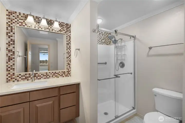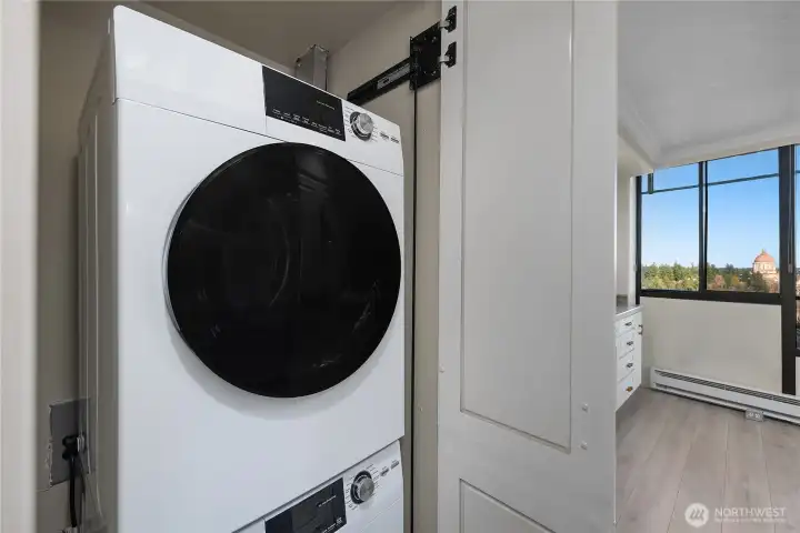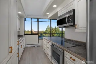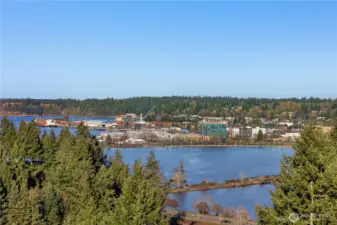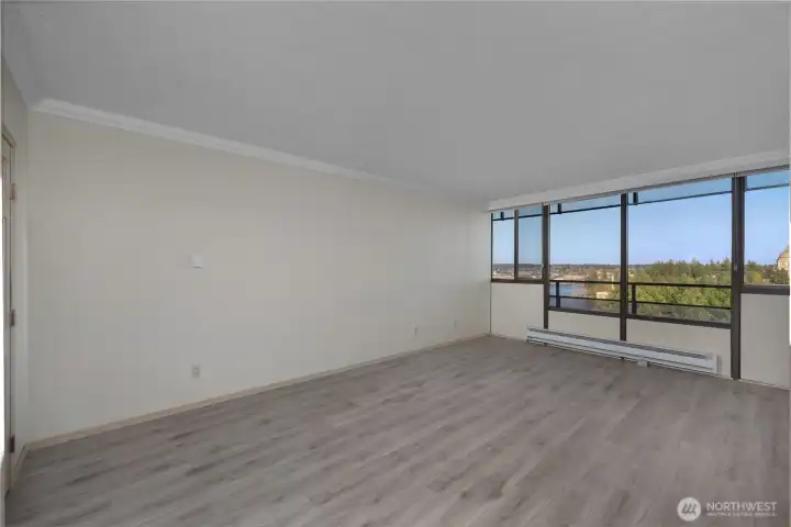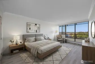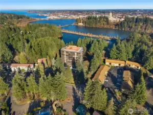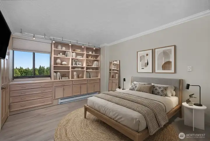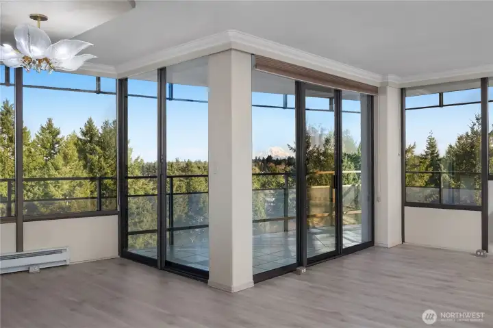 Perched on the 9th floor, this stunning corner condo captures sweeping wraparound views of Mount Rainier, Capitol Lake, and the Sound, an ever-changing backdrop you’ll never tire of. Crown molding and laminate wood floors run throughout, complemented by a new water heater and the convenience of an in-unit washer and dryer. The flexible bonus room can serve as a bedroom, office, or den, adapting easily to your lifestyle. The kitchen is equipped with a new Sub-Zero refrigerator and new dishwasher, perfect for both everyday living and entertaining. The spacious primary bedroom features a large walk-in closet and an en suite bath with full tile, shower, and tub. A second bedroom offers generous storage and custom built-ins for added functionality. Step out onto the patio and take in panoramic views that seem to go on forever—ideal for morning coffee or evening sunsets. Capitol Lake Towers elevates everyday living with a gym, sauna, and nearby trails, plus the convenience of being close to the Westside, shopping, medical services, restaurants, and more. HOA dues include water, sewer, garbage, a dedicated parking space, and an additional storage unit. With exceptional amenities, thoughtful upgrades, and truly priceless views, this condo offers an extraordinary opportunity you won’t want to miss. (Images contain virtual staging)