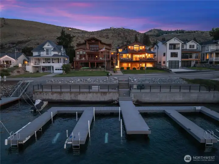 Rare opportunity to own a home w/ dock & boat lift in one of Chelan’s most idyllic neighborhoods. This is one of the best locations on Lake Chelan - providing the perfect amount of sun exposure to be comfortable all day. This beloved block is tucked away and hasn't had a home on the market in years. The proximity to everything is unbeatable: walk to Sigillo Cellars rooftop patio, Lakeside Tavern, Lakeside Surf & Downtown Chelan on the soon-to-be-completed Lakeside trail. With a beautiful & spacious floor plan that includes 2 expansive primary suites, gorgeous back patio, large recreation room, 2 decks for enjoying the lake view & tons of storage & parking, this home offers the ultimate lifestyle in a setting that’s impossible to replicate.