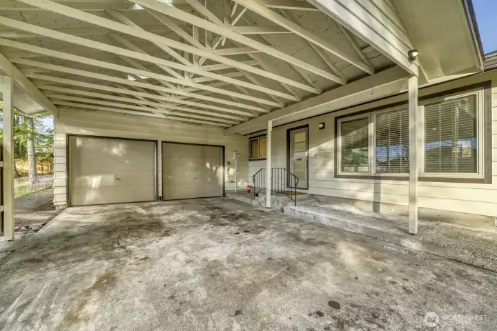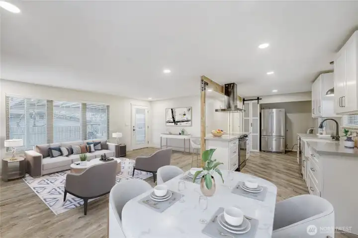 Set on a nearly 1/4 acre lot, this fully turn-key three bed two bath rambler checks every box and then some. Step inside to discover a spacious open-concept living, dining and kitchen area anchored by a stunning floor-to-ceiling brick fireplace. The entertainer’s kitchen has been professionally updated with stainless steel appliances, crisp new cabinetry and elegant quartz countertops. Natural light pours through windows throughout the home, creating a warm and inviting atmosphere in every room. The primary bedroom offers privacy and convenience with its own 3/4 bath ensuite, while the beautifully updated full hallway bathroom serves the rest of the home. But here's where this property really shines: storage for days. A carport plus a two car garage means room for vehicles, toys, and/or all your hobbies. Inside the garage you'll find built in workbenches, a plethora of cabinets, and pull down stairs leading to generous attic storage. Whether you're a DIY enthusiast or just need space to organize your life, this setup delivers. The fully fenced backyard is your private retreat with a spacious 8x10 shed and thoughtfully maintained mature landscaping that provides both beauty and privacy. Located just minutes from parks, schools and shopping, this home offers the perfect blend of suburban tranquility and everyday convenience. Don't miss your chance to own this exceptional property.