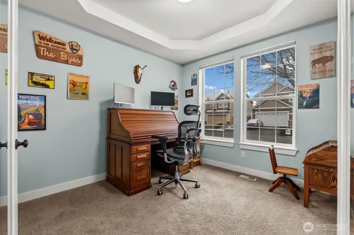 Welcome to the sought-after Edgewater community! This spacious 2,940 sq ft home offers the perfect blend of comfort, functionality, and location just moments from Edgewater Park and adjacent to Hawks Prairie Golf Course. As you enter the home you're immediately greeted with well-kept and timeless hardwood floors that extend all the way to the kitchen. Step inside to an open-concept layout featuring a formal dining room and an eat-in kitchen equipped with granite countertops, stainless steel appliances, and a double oven that's ideal for everyday living and entertaining. The massive primary suite is equipped with everything you could want! It's complete with its own fireplace, a luxurious 5-piece bathroom, and a large walk-in closet. Stay comfortable year-round with A/C, and enjoy the nice-sized backyard with a patio that is perfect for relaxing or hosting gatherings. The rare 3-car tandem garage extends all the way through to the back of the home, offering exceptional storage and versatility with a garage door to the back yard. Conveniently located near I-5 for an easy commute to JBLM, with close proximity to schools, parks, and amenities. Bonus: the home includes two Tesla chargers, and the HOA covers front yard landscaping for low-maintenance living.