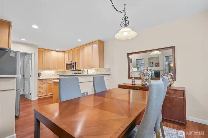 Beautifully updated end-unit townhome in the gated Blueberry Place community. A stunning, fully remodeled kitchen with quartz countertops and stainless steel appliances opens to a bright two-story living room w/gas fireplace and adjacent dining area, ideal for entertaining. The main level also features full-size laundry room and a convenient powder room. Upstairs, the spacious primary suite offers vaulted ceilings and a luxurious five-piece en-suite bath with dual vanity, complemented by two additional bedrooms and a full bath. Enjoy outdoor living in the fully fenced private backyard with patio. Additional highlights include efficient radiant heat, a security system, and an attached two-car garage. Ideally located near I-405, The Landing's popular shopping and dining, and Renton schools.