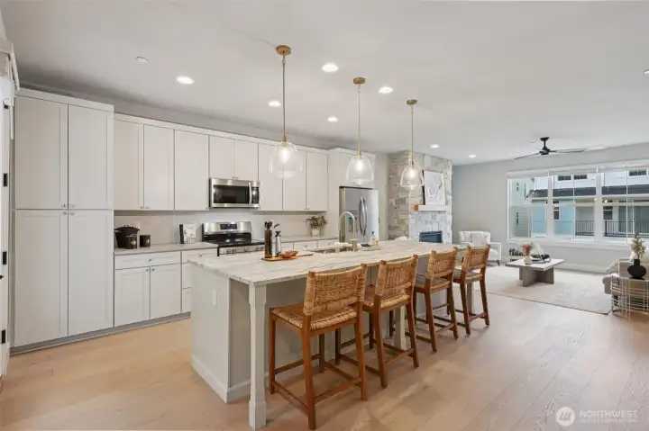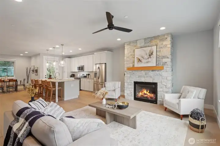 BUILDER INCENTIVES! 4.99% with 50K buydown. NEW construction 4-bed by Glen Eagle Homes. Modern farmhouse meets coastal. Enjoy spaciousness & a thoughtful layout. Main living offers open-concept design, wide-plank hardwoods & gas fireplace w/ floor-to-ceiling stone surround. Views of the Cascades. Covered deck for yr-round use. Kitchen has a huge island w/ seating & storage, shaker Aristokraft cabinetry, buffet w/ wine storage + bev fridge + walk-in pantry. All SS appl. Oversized windows throughout. Powder bath & den on main. Generous Primary Suite w/ ¾ en-suite & WIC. Flex space could be 4th bed, rec-room w/ wet bar or MIL. Ideal commuter location.