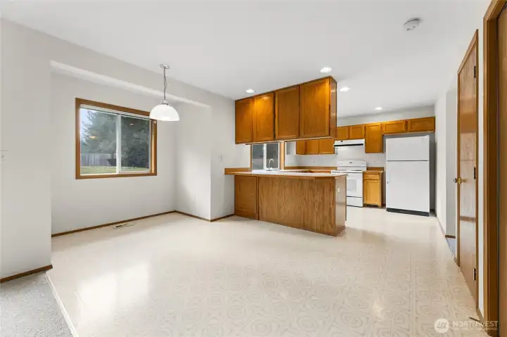 Welcome home to this beautifully maintained 3-bedroom, 2-bath residence offering 1,848 sq ft of comfortable living on a large, private lot just under .4 acres. Tucked into a quiet, cute, and friendly neighborhood, this home offers the perfect blend of privacy and convenience, with a very private backyard and easy access to town, shopping, and freeways. Vaulted ceilings greet you at the entry, creating a bright and inviting first impression. The spacious floor plan features separate living and family rooms, a dining room, large kitchen with nook, and a cozy gas fireplace on the main floor. The primary bedroom includes a relaxing five-piece bath. Stay comfortable year-round with air conditioning, and enjoy the convenience of all appliances staying, including washer and dryer. Fresh exterior paint and an exceptionally clean interior make this home truly move-in ready.