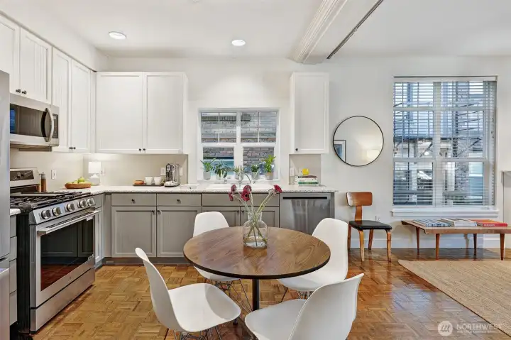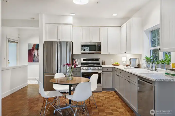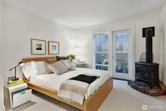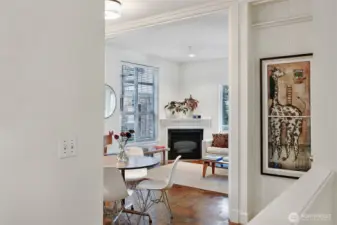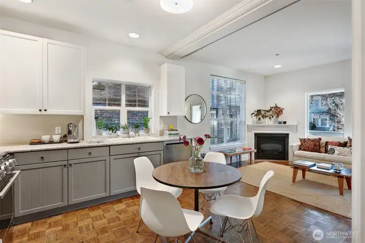 Charming 2-bedroom condo on wonderful Malden Avenue East, just one block from the cafes and shops of vibrant 15th Avenue E on Capitol Hill. Located in a boutique condo complex, Unit B enjoys a welcoming front porch deck/entry to home. Fresh and fun interiors including all new stainless kitchen appliances and new washer/dryer. Hardwood floors on main, gas fireplace in living room and free-standing gas cast-iron fireplace in primary bedroom. Lower level has lovely new carpet, two bedrooms both with access to back patio, good closet space in bedrooms and extra storage in lower hall. This unit has TWO covered, secured parking spaces!! Spacious common deck off the back door – leads to carport. Minutes to both downtown Seattle and University of Washington. Water/sewer/garbage/gas included in monthly HOD.