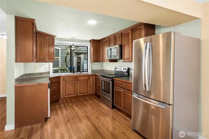 Welcome home to this beautifully designed single level condo in Valley Firs. This well maintained residence offers 2 spacious bedrooms and 1.75 baths with a thoughtfully flowing layout ideal for both everyday living and entertaining. The primary suite is a private retreat featuring double doors to the living room, a walk-in closet, 3/4 ensuite bath and it's own sliding door leading to the back patio, perfect for quiet mornings or evening unwinding. Step outside to a serene patio backing to a lush greenbelt, offering a peaceful and private outdoor escape. The generous dining area easily accommodates gatherings large or small. Tastefully improved kitchen with stainless steel appliances and ceiling high cabinetry offering plenty of storage! Washer and dryer are included! 2-car garage provides abundant storage with built-in closets. Conveniently located just minutes from WA-16, Fircrest Golf Course, shopping, dining, and entertainment. This condo combines comfort, privacy, and unbeatable location. This community is for everyone of all ages! (Not a 55+ community) Some photos have been virtually staged for decoration inspiration.