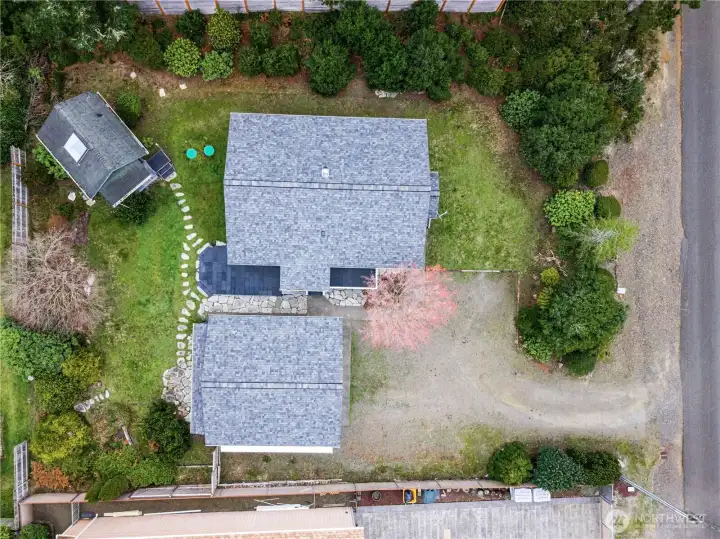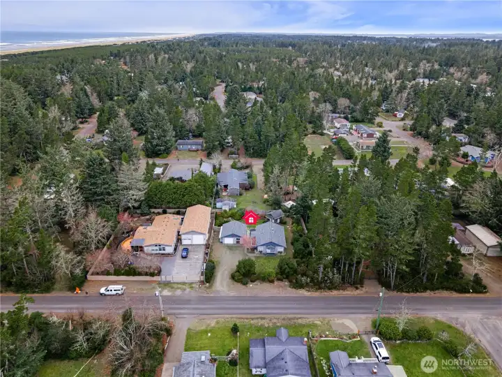 WESTSIDE WALK TO BEACH! Awesome location on dead end street near Pacific Pines State Park with ocean beach access just a few blocks away. Solid home has been loved for many years and is ready to be loved by a new owner. Ready to enjoy now and ready to add your own personal decor touches. Brand new roof on both home & garage. New interior paint. Home well placed in the middle of large 101 x 125 lot, so it is set back from neighbors and the road. Private back yard is partially fenced with beautiful easy care mature floral landscaping and colorful trees. Slate steppingstones. Wonderful cedar shingled studio building with large skylight in back yard has power & water could be a great bunkhouse or hobby cottage. Detached garage has large workspace with work bench, lots of shelves & a 1/2 bath. Numerous exterior storage areas. Plenty of room to park RV or Boat in large level graveled area. Large deck & 2 covered porches on home. Kitchen open to dining area. Wood cabinets, lots of counter space & double stainless sink. All appliances & washer/dryer included. Great natural light with corner windows in living area. Toasty wood stove & ceiling fan. Walk in shower with hand holds. Location, location, location this home has it. Attractive neighborhood ever so close to the ocean. This lovingly cared for home hasn't been on the market in over 30 years and it is priced to sell! Come start making your beach memories here today. Better act quick this extraordinary opportunity won't last long!