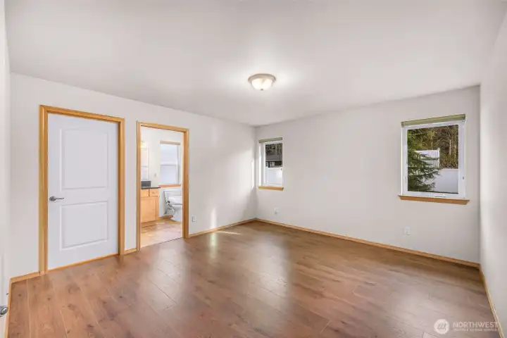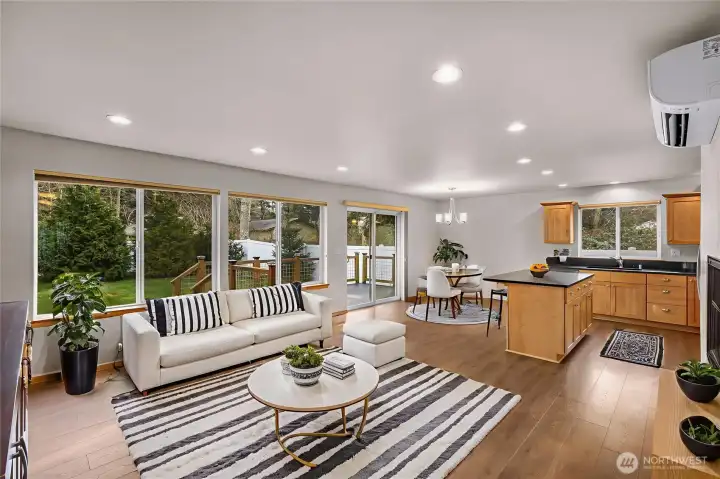 Welcome home to this newer S. Coupeville rambler that truly checks all the boxes—stylish, low-maintenance, and completely move-in ready. The open-concept layout is enhanced by vaulted ceilings and durable luxury vinyl plank flooring, creating a bright, airy feel with effortless flow. The kitchen is both functional and inviting, featuring maple cabinetry, stainless steel appliances, a brand-new dishwasher, recessed lighting, and plenty of workspace for everyday living or entertaining. Two generous bedrooms include a serene primary suite with a walk-in closet and a private ensuite bath complete with a bidet. A third flexible room easily serves as a guest bedroom, home office, or creative space. Comfort is covered year-round with efficient minisplit heating and cooling plus wall electric heat. Outside, enjoy easy living with Hardiplank siding, a fully fenced level yard with no-maintenance vinyl fencing, and a spacious back deck finished with Trex-style decking—perfect for relaxing or hosting friends. The garage offers abundant built-in storage to keep everything organized. Located in the desirable Bon Air subdivision, residents enjoy access to a community beach and park, with convenient proximity to the charm of Coupeville and the amenities of Freeland. Truly nothing to do but move in and start enjoying island life.