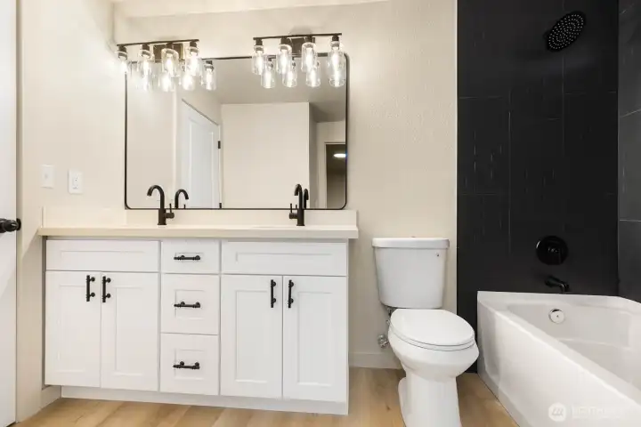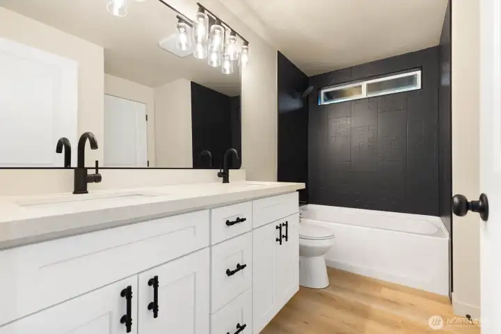 Beautifully remodeled Bonney Lake home tucked away on a private drive way with peaceful, secluded backyard.This property offers 3bedrooms and a full bathroom upstairs, along with a lower level featuring and additional living room, full bathroom, and a bedroom with direct access to the backyard-ideal for quests, RBNB, generational living or flexible use. The home has been fully updated from top to bottom, including a new roof, new windows, fresh interior & exterior paint, and durable LVP flooring throughout. The custom , timeless kitchen is equipped with brand-new appliances, quarts countertops, and stylish finishes creating a welcoming space for everyday living and entertaining. Both bathrooms have been remodeled with clean, contemporary design. Two car garage attached. Come see this perfect balance of privacy and convenience in this desirable Bonney Lake location -latterly minutes from free way access shopping, dining, and local amenities. This is a move-in-ready home with no HOA and extra room for parking!