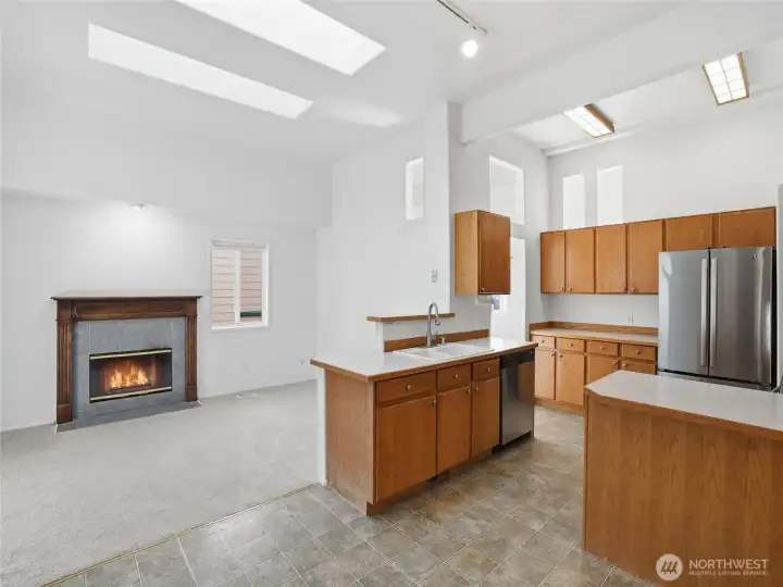 Stunning Camas ranch pairs refined design elements with everyday livability in one of the area’s most desirable settings. Tall ceilings, sculpted soffits, skylights, & expansive windows create a light-filled, open ambiance throughout the main living area. The kitchen offers generous counter space, an eating bar, & cozy breakfast nook, all opening seamlessly to the great room with sliding doors to the deck & backyard. Overhead skylights bathe the space in warmth, creating an inviting atmosphere throughout the day. The well-proportioned primary suite provides comfort & visual interest, with sliding doors extending the living experience outdoors. A vaulted secondary bedroom also features a slider to the deck, adding flexibility & connection to the exterior. Fully permitted & insulated bonus room created from the converted garage. Designed with versatility in mind, this space includes its own heating unit, insulated door, & exterior entrance. Previously used as a studio, it’s ideal for a home office, creative workspace, guest retreat, commercial kitchen, or ADU-style living or guest quarters. For those preferring a traditional garage, the conversion can be reversed with ease by removing the raised flooring. Located near neighborhood parks, trails, & top-notch Camas schools. With elevated design details and flexible living spaces, it presents a rare opportunity to own a home that evolves beautifully with the way you live.