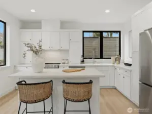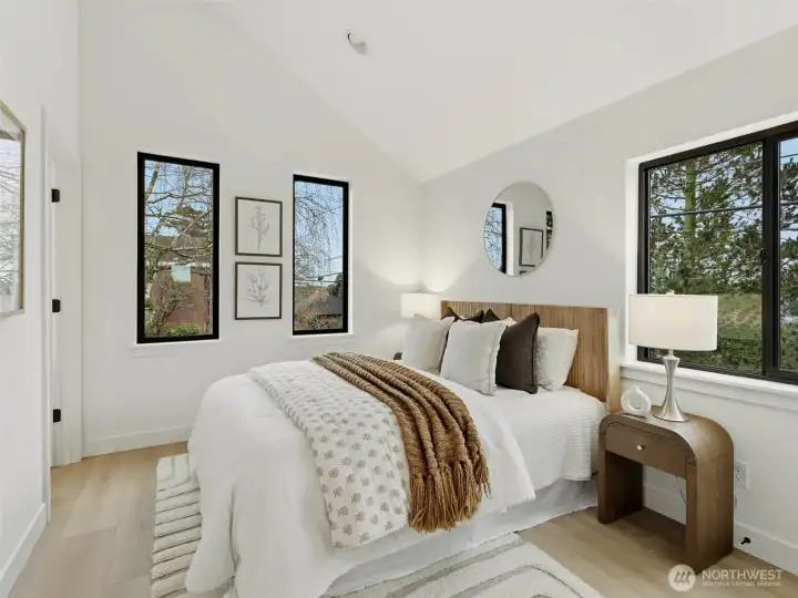 LAST HOME LEFT! The Hollis is part of the brand-new 28th & Dravus community, Cartwright Built’s latest offering of three thoughtfully designed residences in the heart of sought-after Magnolia. Targeting Certified Built Green 4-Star, this detached two-story cottage features a custom floor-plan with two bedrooms, each with ensuite baths, vaulted ceilings, dedicated EV-ready parking, and a fully fenced private yard with patio. Elevated finishes throughout include thermally modified Radiata Pine siding, Level 5 drywall, a built-in kitchen island, in-ceiling ductless heating and cooling on the main floor, custom closet organizers, and an outdoor storage closet. The home is finished with a refined minimalist aesthetic, blending warm textures and clean lines to create a space that feels both modern and inviting.
