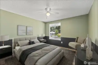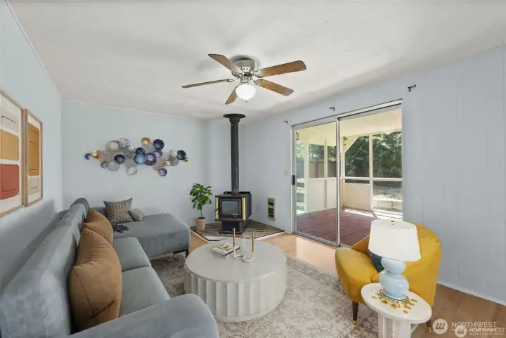 Welcome to this beautifully maintained 3-bedroom rambler situated on nearly a quarter-acre lot in the heart of Olympia. This move-in-ready home offers a thoughtful layout with two fireplaces, a newer roof, and two tastefully remodeled bathrooms that blend comfort with modern style. The kitchen has been updated with stainless steel appliances and an upgraded deep sink, making it both functional and inviting for everyday living. The spacious living room features a cozy wood-burning fireplace, perfect for relaxing evenings, while the separate family room is ideal for entertaining with its wet bar and sliding glass doors that lead to a covered back deck, great for year-round use. Natural light flows throughout the home, creating a warm and welcoming atmosphere in every space. Outside, enjoy a large yard with plenty of room to garden, play, or expand, along with convenient RV parking and no HOA restrictions. Whether you’re looking for space, flexibility, or a well-cared-for home. Interior furniture and grass have been virtually staged/modified