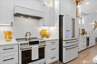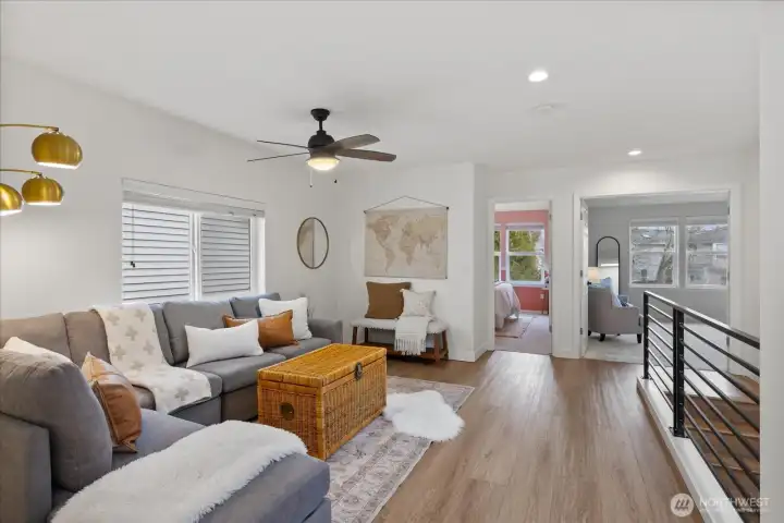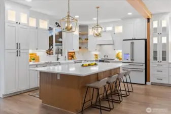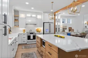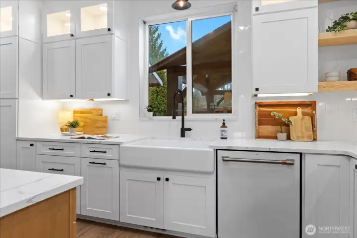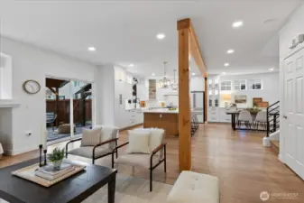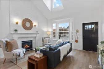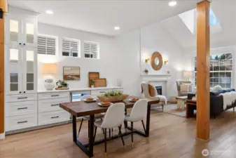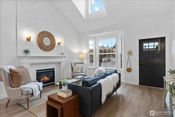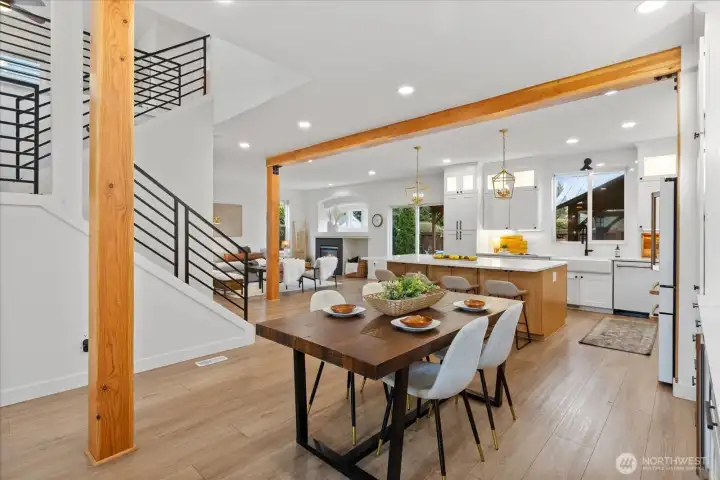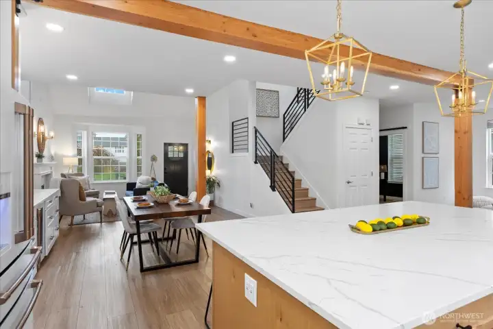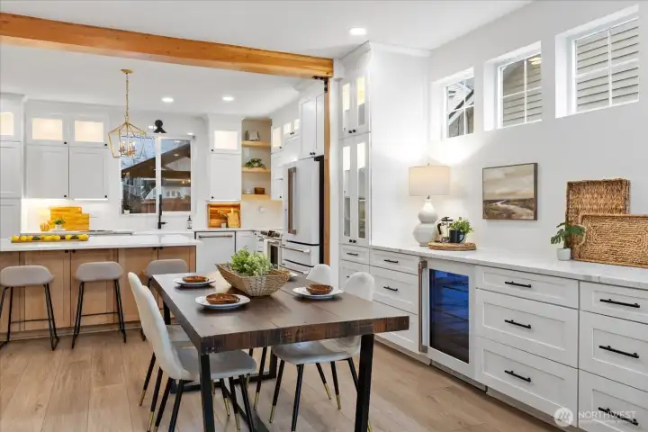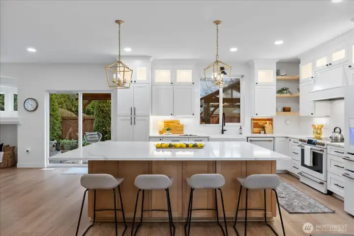 Beautifully remodeled with elevated finishes and architectural presence, this exceptional home offers a sophisticated blend of luxury, warmth, and functionality. Exposed beams, soaring ceilings, and walls of natural light create a striking first impression, while two fireplaces on the main level add depth, ambiance, and everyday comfort. Throughout the home, chic, curated color palettes enhance the design-forward aesthetic. The designer kitchen is a true showpiece, anchored by an expansive statement island and outfitted with GE Café appliances, custom cabinetry featuring generous storage and thoughtful pull-out organization, curated lighting, and refined tile finishes, ideal for both elevated entertaining and daily living. A curated bar area with beverage fridge seamlessly extends the space, making hosting effortless. A dedicated office adds flexibility for work or creative space. The oversized primary suite is a private retreat with a spa-inspired bath and a walk-in closet with built-ins. Three additional bedrooms are complemented by a versatile loft offering additional living or gathering space. Backing directly to a park, the backyard is designed for year-round enjoyment with two covered outdoor living areas, perfect extending your living space in every season. Located within outstanding school boundaries, and just minutes from trails and excellent commuter access, this home offers the ideal blend of privacy, convenience, and and lifestyle. Welcome Home!