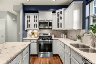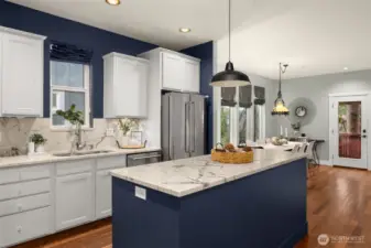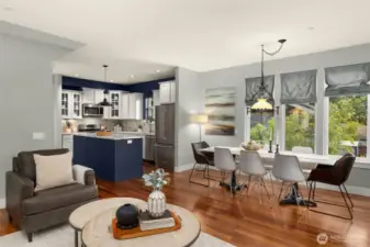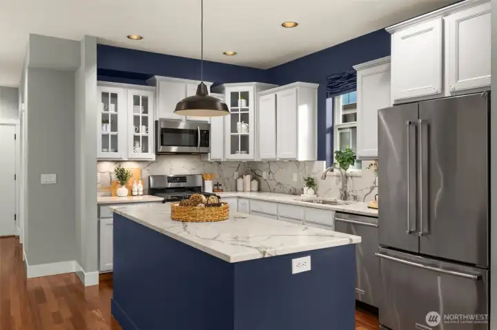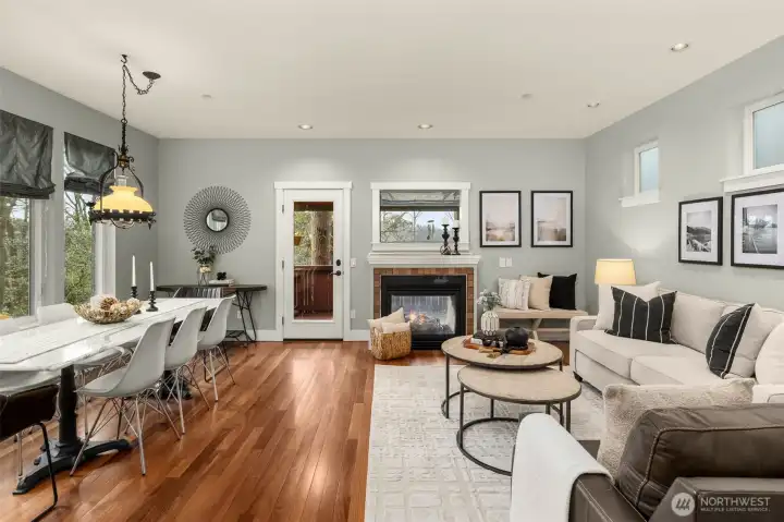 Private West Seattle retreat offering exceptional comfort, style, and thoughtful design throughout. This home is filled with features to love, including radiant in-floor heating, a striking two-way fireplace, rich Brazilian cherry hardwood floors, and abundant storage, complemented by strong architectural details. The chef’s kitchen shines with sleek marble countertops, stainless steel appliances, and a generous island—perfect for both everyday living and entertaining. The attractive and functional floor plan includes three bedrooms plus a versatile bonus flex or office space on the main level. The spacious primary suite features walk-in closets and a beautifully appointed en suite bath. Step outside to a fully fenced backyard with outdoor living area, ideal for year-round gatherings and relaxation. All of this in an ideal location near Puget Park, with convenient access to the West Seattle Bridge, bike trails, and everything West Seattle has to offer.