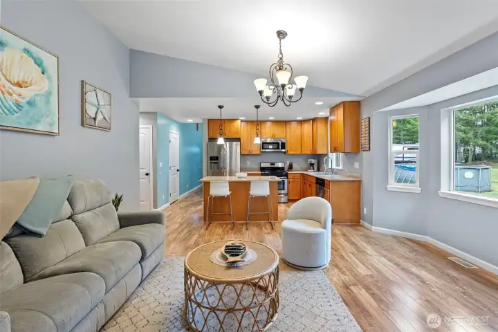 Step inside this welcoming, light-filled, and well-maintained home set on 2.2 acres of manicured, usable property. Natural light pours into the open living spaces, highlighting modern finishes and an airy feel throughout. The kitchen is functional and inviting—perfect for everyday living and weekend gatherings. Enjoy peaceful mornings on the deck surrounded by PNW beauty while birds and squirrels play nearby. With plenty of space to add a shop, garden, or dream outdoor hangout, the possibilities are wide open. This home delivers comfort and calm, plus a circular driveway and mature palm trees bringing major private-oasis energy.