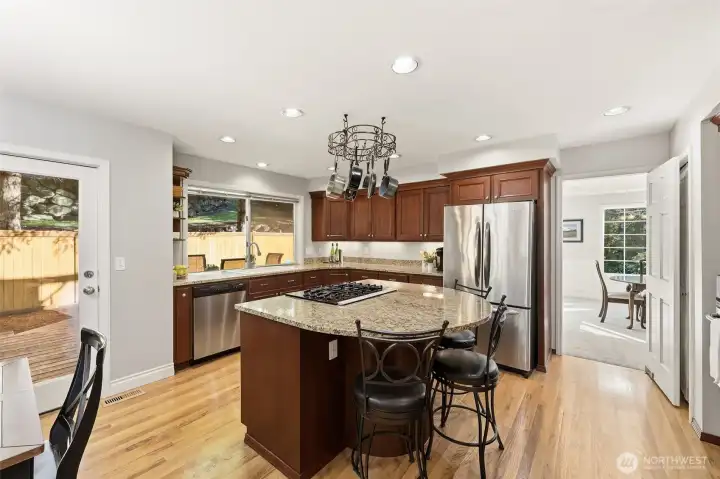 Welcome to this thoughtfully updated and well-maintained home located in the coveted Lake Forest Estates neighborhood. Five bedrooms plus a dedicated office presents exceptional versatility for family, guests, work or hobbies. The primary suite is a true retreat with a five-piece bath. New carpet throughout and all appliances included. The kitchen features granite countertops, gas cooking, and generous prep space, flowing easily to the main living areas. Skylights, ceiling fans, central A/C, and two fireplaces support comfort in every season. Outdoors, beyond the spacious deck, the backyard feels like a private escape with a firepit gathering area, tiered floral gardens, and a tranquil water feature. The three-car garage provides ample room for parking and storage. In Lake Forest Estates, you don’t just buy a house—you step into a way of life that’s genuinely hard to duplicate anywhere else nearby. With larger lots, walkable and bikeable access to town amenities, and a lakefront park reserved for residents, this neighborhood offers a rare balance of privacy, recreation, and convenience. Enjoy exclusive access to a private sports court, playground, covered picnic area, sandy lakefront beach, and dock for paddleboarding and kayaking. All of this is located within the award-winning Tahoma School District. A truly special place to call home.