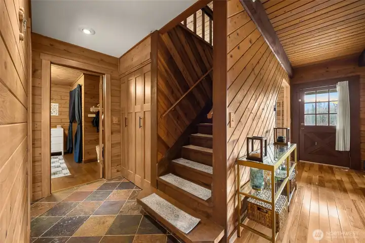 A rare riverfront retreat set at the dramatic convergence of the Wallace & Skykomish Rivers, offering 45' of private river frontage & spectacular fishing right outside your backdoor. This home captures sweeping mountain & river views from multiple vantage points & blends natural beauty with thoughtful, high-end updates throughout. The main level showcases a fully remodeled gourmet kitchen w/quartz countertops, Wolf dual ovens (convection & steam), and a custom-panel Sub-Zero refrigerator paired w/premium hardwood flooring. A cozy living room w/fireplace, spacious laundry room w/storage, main-level bedroom & a remodeled full bath complete the main floor. Upstairs, vaulted ceilings create an open, airy feel w/a generous primary bedroom & flexible office space, a large bonus room ideal for a 3rd bedroom or media room & an additional 3/4 bath. Custom wood doors, trim & warm pine accents add character throughout the home. The upstairs has been remodeled w/high-end engineered hardwood floors. All windows have been replaced with double-pane vinyl windows. Outside, enjoy a new covered riverside composite deck wired w/lighting, private stairs leading to the water & a hot tub w/river & mountain views. Attached 2-car garage w/sink, freezer & 2nd fridge. RV parking & 10’x20’ secured storage shed. Conveniently located near Highway 2, skiing, dining, and shopping. This is a peaceful mountain-river escape where the sights and sounds of the water are part of everyday life.