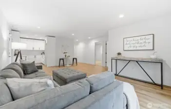 Niche location - & room to spread out. Wood type floors at entry & continue thru formal areas. Upstairs theres a jumbo Greatroom w/sizeable eating area. Extra large quartz kitchen; vast eat-in island. Modern tile work, SS appliances, miles of counter space & contemporary cabinets. Upstairs continues w/3 big bedrms & primary w/4pc bath; vast closet. Laundry room. Classy layout. Step downstairs for 2 more bdrms & second area to cook; hang-out;entertain; private entrance. There's a big bath/laundry too. Gigantic fully fenced yard; Plant a garden, play ball or lounge. Check City ADU/DADU codes, cuz there's tons of space for such. Commuters dream to arterials, gobs of shopping choices & lite rail; minutes to Seattle or skip off to the Eastside! Seatac is just a hop away too. Walk to the river and enjoy neighborhood parks. New construction on a huge lot - dreamy!