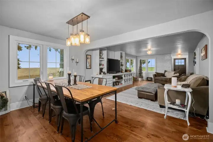 Beautifully Remodeled Farmhouse located on 20 acres just outside Harrington WA. Fenced pasture with 2 separate Barns! HUGE shop! 3 bed home, loft area, 2 bathrooms. (Both double sink with walk in showers) laundry room and Master on main floor with master bathroom attached. Unfinished basement. 3 car detached garage Chicken coop 2 large shops 2 barns 3 silos 55 minute drive to Downtown Spokane.