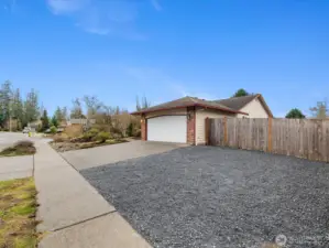 Welcome home to this bright and beautifully refreshed 3-bedroom, 2-bath rambler on a desirable corner lot with NO HOA! Fresh interior paint and abundant natural light create a clean, inviting floorplan throughout. Enjoy spacious living areas, skylights and a covered patio perfect for outdoor entertaining or relaxing year-round. The primary suite offers a generous walk-in closet space and a bright ensuite bathroom with a separate shower and soaking bathtub. Two more additional bedrooms and a full bath. Convenient laundry room located just off the garage, perfect for everyday living w/ additional storage, and an ideal drop zone for shoes, coats & gear. Garden beds and thoughtfully planted flowers add charm and curb appeal. Tons of parking, including RV space make this home ideal for all your needs. Conveniently located close to shopping, dining, and everyday amenities—this one checks all the boxes!