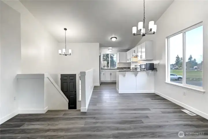 Welcome to this beautifully remodeled 4-bedroom, 2.75-bath home with new flooring, a new roof, and fresh interior and exterior paint throughout. The open-concept upper level features a spacious kitchen, dining, and living area, plus a large primary bedroom and two additional bedrooms. Downstairs, enjoy a generous family room with a gas fireplace, a large bedroom, and a 3/4 bath, perfect for guests or flexible living. A great-sized yard and a park directly across the street complete this move-in-ready home, offering the perfect blend of comfort, space, and outdoor living.