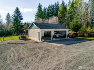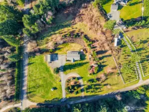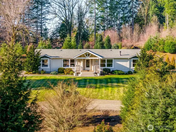 Country retreat starts with 5.03 acres, a 1,782 sq ft manufactured home and shop that offers the space and setup buyers are searching for—inside and out. Open the front door to this 3-bedroom, 2-bath home boasting an open floor plan with vaulted ceilings, gorgeous flooring, and classic paint. Entry flows into the spacious formal living or family room. Smile when you step into the kitchen with its clean tile countertops, large island and cabinets galore. Host from either the formal or everyday dining areas. Fall in love that the primary suite offers double closets, plus a primary bath with double sinks, soaking corner tub, large shower, and storage—separate from the guest suite. Drop dirty clothes right into the laundry with its extra folding table and easy access. And if that is not enough, check out the outside options: a U-shaped roundabout driveway, a 3-car detached garage (sheetrock, 210 power, attic storage), large tool shed, and garden shed—room for projects, storage, and hobbies. Host on the large covered back patio and take in a private backyard. Enjoy a park-like backyard with room to play, garden and relax—daily. Raised beds and established garden space to enjoy homegrown produce, plus an animal shed and fenced animal fields ready for your four-legged plans. Explore your own trails by walking, biking or ATVs and enjoy the privacy of acreage living—while still being minutes from schools and everyday amenities. See it in person to feel it.