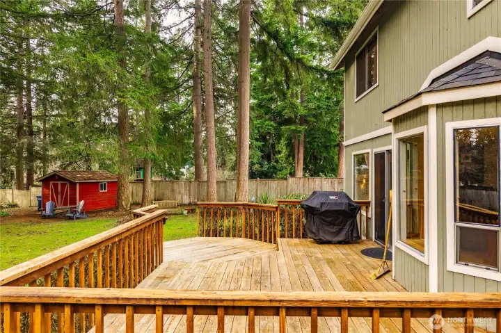 Welcome home to this one-owner, 2,030 sq ft home on a quiet cul-de-sac in the desirable Cedar Ridge community of Bonney Lake. The open-concept layout feels warm and inviting with a grand living and dining area, skylights, and a kitchen with island opening to the family room with a wood-burning fireplace. This 4-bedroom home includes a spacious primary suite and gas heat. Enjoy outdoor living with a large, private backyard, entertainment-size deck, sprinkler system, and 10x12 shed with electricity. Major updates include new roof (2016), water heater (2019), and gutters with guards (2023). Beautiful neighborhood setting.