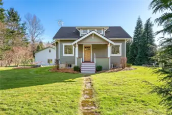 Fully renovated 4-bedroom Craftsman set on 4.3 picturesque acres, complete with a detached shop, barn, lean-to & greenhouse—ideal for hobby farm living. Thoughtfully remodeled home in 2013 by Haldorson Homes, w/the charm of yesteryear while offering today’s modern comfort & amenities. Open-concept kitchen flows seamlessly into the dining area just off the living room, creating an easy space for everyday living & entertaining. Main-floor primary BD w/bath has heated tile floors and walk-in closet adds convenience, while upstairs you’ll find 3 additional bedrooms. Over 750 sqft of unfinished basement space provides extra storage. Brand new roof with transferable warranty & water heater. Outside, enjoy a 30'x48' shop with bathroom, office space & flex room + 2 large bays for parking vehicles. 24'x74' barn, additional storage shed, raised garden beds, orchard with water feature & irrigation from rain catchment system all bordering creek to the east. Fully fenced & ready for critters of any size! A perfect hobby farm or country retreat. Welcome home!