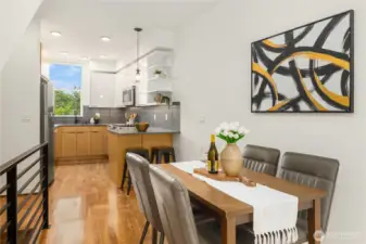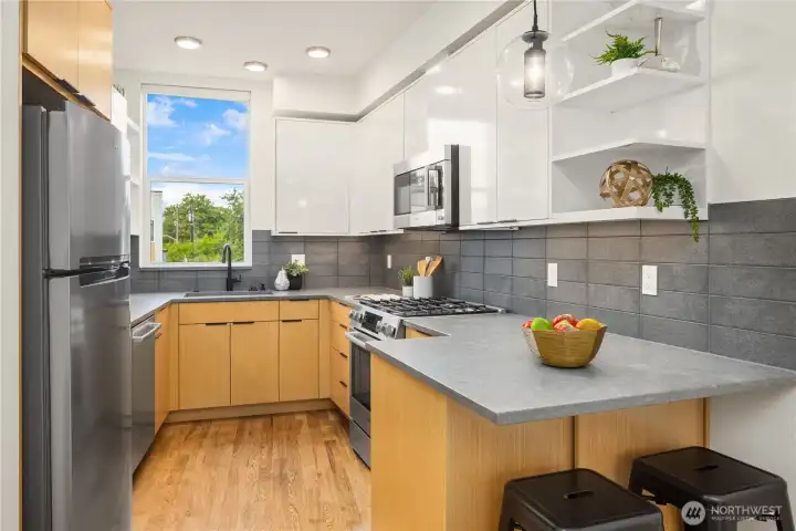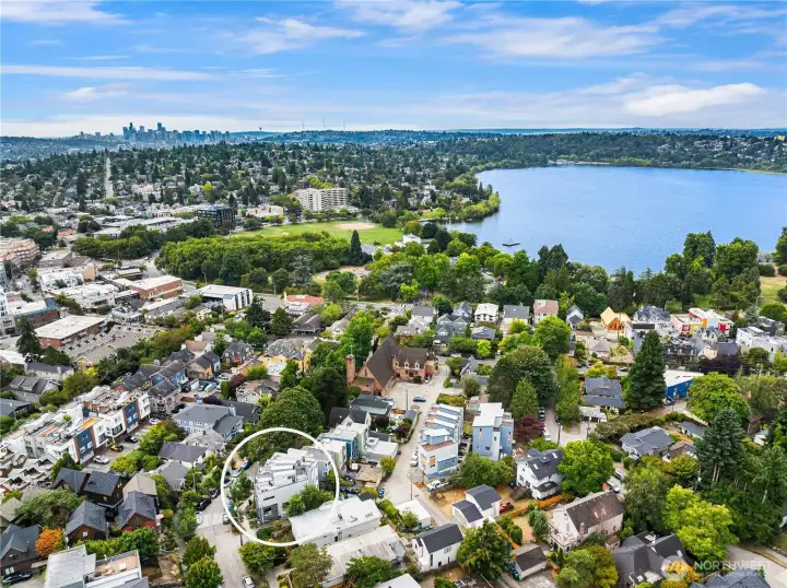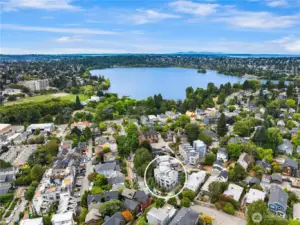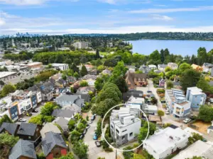Just steps from Seattle’s iconic Green Lake, this modern townhome blends sleek design with everyday comfort. Light-filled interiors w/ vaulted ceilings and hardwood floors create a sense of openness, while the chef’s kitchen, featuring quartz counters, stainless appliances, and custom cabinetry anchors the main living space. The flexible three-bedroom layout includes a clever lower-level retreat with a custom Murphy bed and hidden desk, perfect for guests or remote work. Upstairs primary w/ spa-inspired bath and an expansive rooftop deck with lake & mountain views elevate daily living. And- with NO HOA dues, you’ll enjoy more freedom in one of Seattle’s most vibrant neighborhoods—where trails, cafes, and culture are right outside your door.