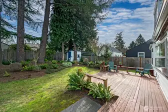 Wedgwood: “Center of the Un-Known Universe!” Tranquil, hide-away neighborhood imbued with community, simplicity, and privacy. Walk to schools, coffee shops, restaurants, and grocery stores. This home features a small stairway to the front door. Main level offers 2 bedrooms and 1 bath, cozy kitchen, dining room, and living room. Upstairs includes 2 additional bedrooms and 1 bath. Baths have been modernized. Finished basement with rec room, utilities, and one-car garage. Bright dining room sliding glass doors invite you to a large above-ground deck; perfect for an after-work break or entertaining friends. Ultra-private, flat, simply manicured, and treed/fenced backyard. Unassuming perfection awaits you.