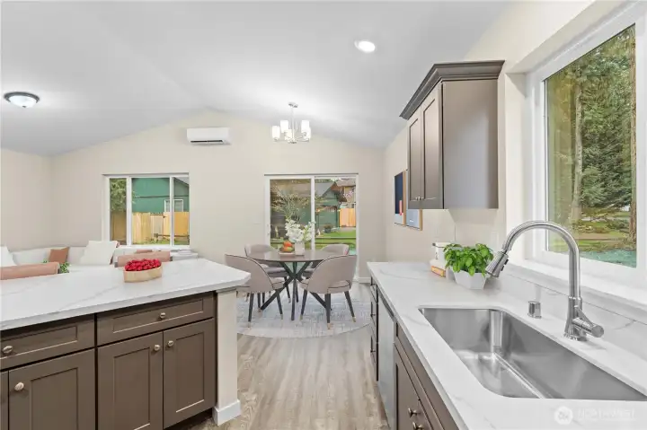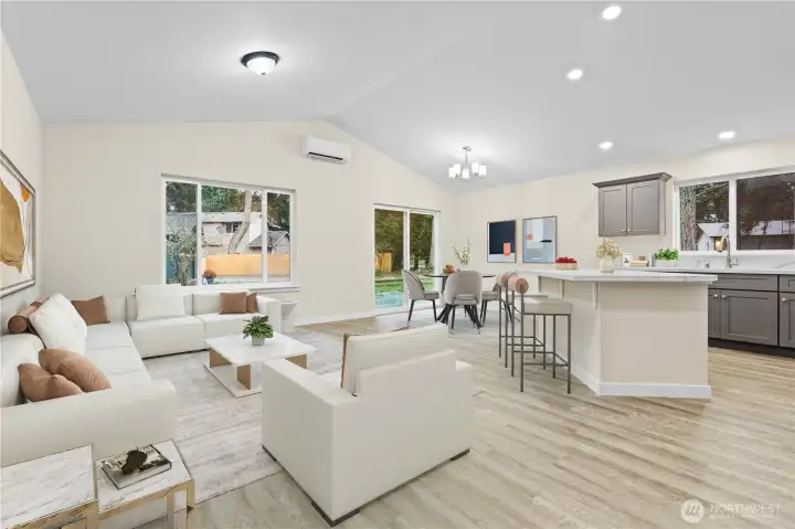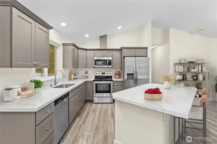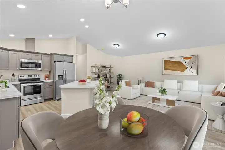 Brand-new construction in the gated Clearwood community! This thoughtfully designed 3-bedroom, 2-bath home features an open-concept layout with vaulted ceilings that create a bright, airy feel. The stylish kitchen offers stainless steel appliances and flows seamlessly into the living and dining spaces—perfect for everyday living and entertaining. Primary suite includes a private bath, while two additional bedrooms provide flexibility for guests or home office space. Attached 2-car garage adds convenience. Enjoy the privacy and amenities of Clearwood, including lakes, trails, parks, and security, all just minutes from Yelm amenities. Move-in ready and waiting for you!