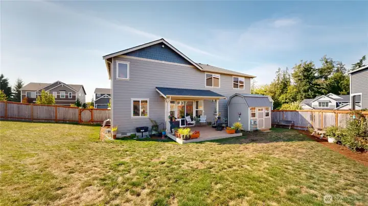 Check out this amazing like-new two-story home before it is gone! 2,061 square feet spread out through 4 bedrooms and 2.5 bathrooms. Kitchen features quartz countertops and stainless steel appliances. Durable engineered hard surfaces throughout the bottom floor with kitchen, living room, dining room, 9 foot ceilings, and a gas fireplace. Upstairs you will find freshly cleaned wall-to-wall carpets and a spacious open loft with all four bedrooms and two bathrooms. This home has an energy efficient tankless water heater and an air conditioner for the the summer time. Backyard is fully fenced featuring a composite deck with a shed for additional storage. Close to schools, shopping, and amenities this home is what you are looking for!