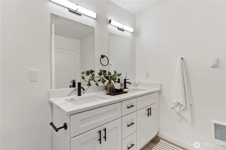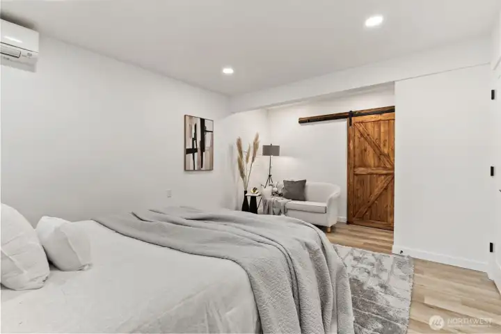 Stunning remodeled split-entry home with newer roof and sleek glass garage doors, nestled on a fully fenced lot backing to a tranquil greenbelt. Enjoy exclusive access to Jenks Park with private beach, tennis courts, and boat launch—perfect for outdoor recreation. The upper level features 2 bedrooms, an office, and a beautifully updated kitchen with soft-close cabinets, stainless steel appliances, and a waterfall island, complemented by a mini-split unit in the living room for year-round comfort. Downstairs boasts a spacious primary suite with walk-in closet, ensuite bath, and a cozy family room. Combining modern upgrades, serene outdoor spaces, and coveted private park privileges, this home is truly a must-see!Come See TODAY!