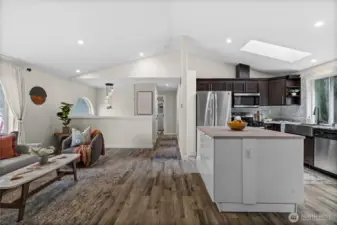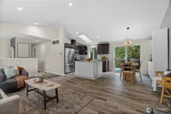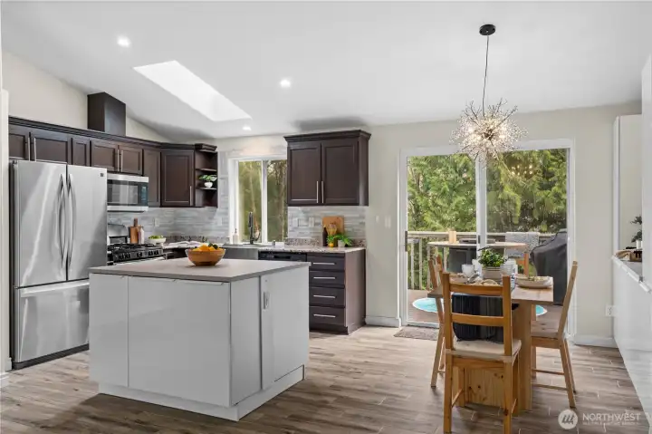 Situated within a quiet Port Orchard community, this beautifully updated home sits at the end of a quiet cul-de-sac & offers an exceptional blend of privacy, convenience, & comfort. Adjacent to protected, community-owned greenbelt & across from the neighborhood playground, the setting provides an open, peaceful backdrop rarely found so near city amenities. The light-filled upper level features an open-concept layout that seamlessly connects the living, dining, & kitchen spaces, creating a welcoming environment for daily living & entertaining. The primary bedroom includes a private bath, while a connecting guest bathroom adds functionality & flexibility to the floor plan. Downstairs, an additional bedroom & a spacious open area offer versatile use as a rec room, home office, workout space, media lounge, or creative flex space, allowing the home to easily adapt to changing needs. Outside, mature, manicured landscaping enhances both the yard, creating a polished yet inviting outdoor experience. The backyard is thoughtfully designed for relaxing or entertaining & features a gazebo & firepit for gatherings, along with a dedicated dog run along the side of the home. Addtional highlights include a new roof, A/C for year-round comfort & a convenient location less than 5 min from hwy for easy commute to PSNS, near medical facilities, shopping, dining & amenities. With thoughtful updates, flexible living spaces, & central location, this home delivers comfort, functionality, & location.