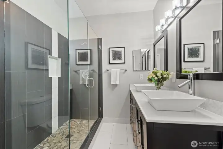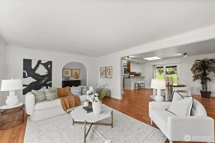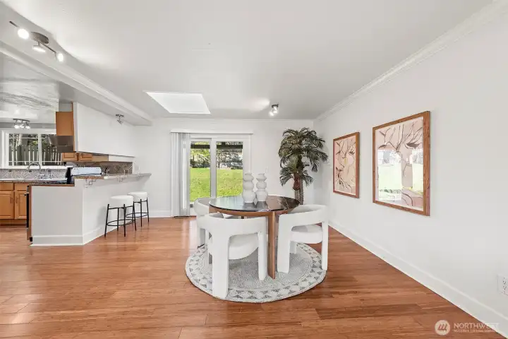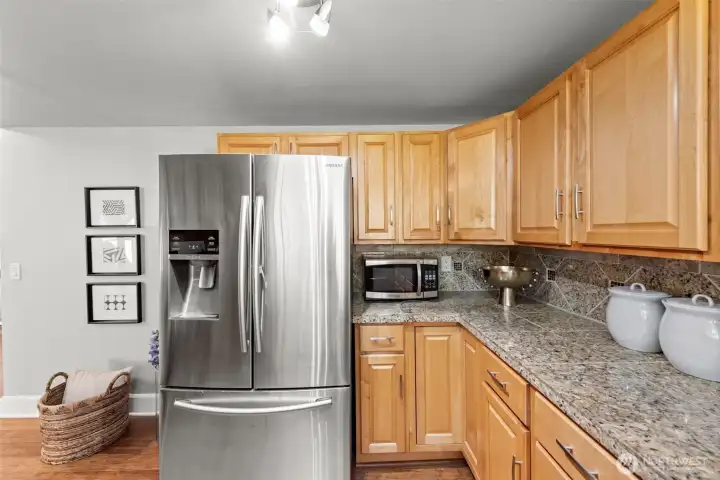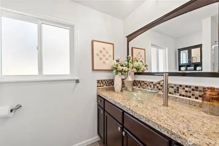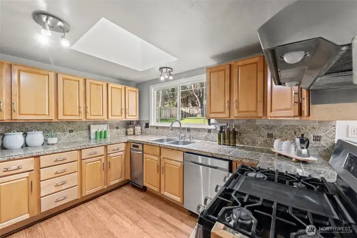 Welcome to this charming Kirkland residence tucked away in the desirable Windsor Vista neighborhood. Thoughtfully updated and truly move-in ready, this home offers a flexible layout with four bedrooms, including dual primary suites — ideal for multi-generational living or guest privacy.At the heart of the home is a refreshed kitchen featuring granite surfaces, stainless steel appliances, and modern tile detailing, flowing seamlessly into inviting living and dining spaces. Hardwood flooring, updated windows, a newer roof, and fresh interior paint provide both style and long-term comfort.Step outside to a bright, fully usable backyard with a covered patio and storage shed — perfect for outdoor dining, play, or relaxing in the Northwest sunshine.Enjoy the convenience of top-rated Lake Washington schools, quick access to I-405, and close proximity to Totem Lake, downtown Kirkland, parks, and shopping. A wonderful opportunity to own in one of Kirkland’s most convenient neighborhoods.