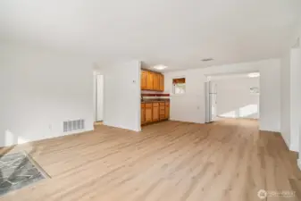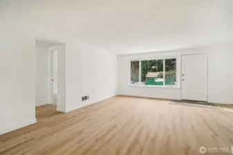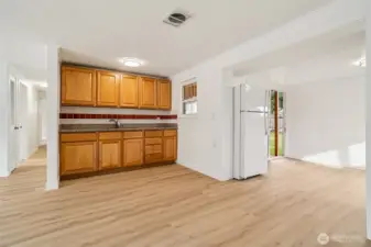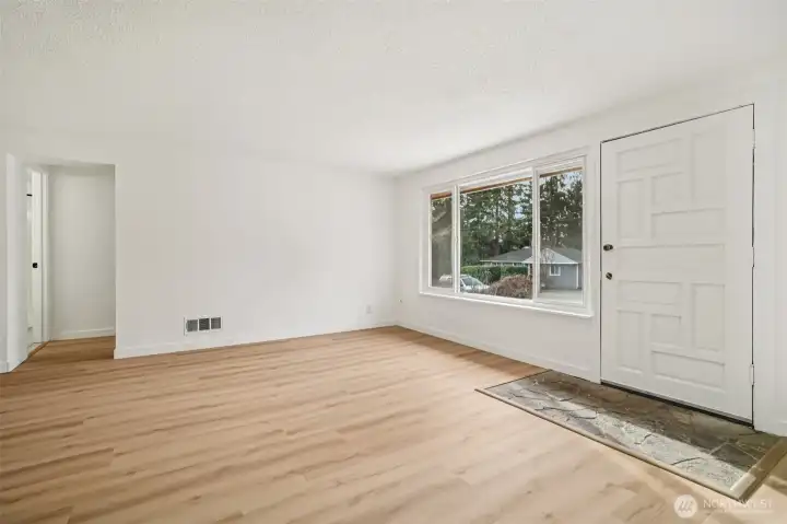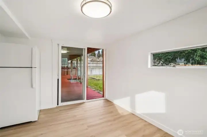 This 4 bedroom, 2 bath Mountlake Terrace rambler is updated and move-in ready. A slate entry leads to west facing living room. A spacious kitchen with all major appliances including a new fridge and stove. Plus an adjoining dining area with additional countertop and cabinet space. The main bathroom is fully renovated along with new engineered hardwoods throughout. And only a 10 minute walk (half mile) to the MLT light rail station. A large and level lot, fully fenced including outbuilding for storage AND a covered deck plus patio. New roof and new concrete driveway in 2025/2026. Remainder of driveway will be gravel and completed soon. Natural Gas Forced Air Heat. 4th bedroom or office plus 3/4 bath. Well maintained neighborhood with easy access to parks, schools, freeway and extensive shopping.