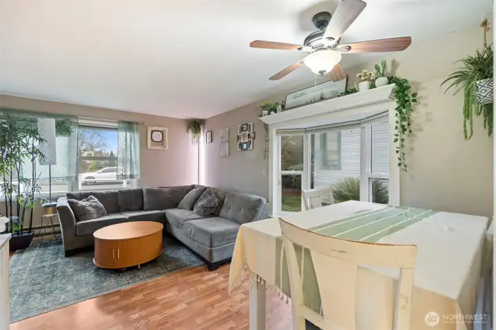Welcome to 729 Euclid Way, a centrally located single-story home in Centralia’s Edison neighborhood offering 1,368 sq ft of functional living space. The flexible floor plan includes two bedrooms, 1.75 baths, and a dedicated den or office, providing options for work-from-home, guests, or additional living space. The main living area features hardwood flooring and a gas fireplace, with natural light flowing through large windows into the adjoining dining space. The dining area connects directly to the kitchen, creating a practical layout for everyday living. Neutral tones and ceiling fans throughout contribute to a comfortable interior. The kitchen offers ample cabinet storage, laminate countertops, and standard appliances, with an efficient layout and convenient access to the utility room. Bedrooms are well-sized with hardwood flooring and nearby bathroom access. Outside, the level lot includes partial fencing, a detached covered carport, and multiple outbuildings for storage or hobby use. Additional features include a metal roof, public water and sewer, and off-street parking. Conveniently located near downtown Centralia, local schools, parks, and quick access to I-5. A solid opportunity for owner-occupants or investors seeking a well-located home with usable space inside and out.