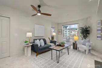 Oh hi! I’m your front-row seat to the quintessential Ballard lifestyle. You’ll find me 4 floors high in Canal Station, where coffee shops, iconic dining, cute boutiques, and the Sunday Farmers Market are just steps away. My bright open living space welcomes you home after a day of urban exploration. Enjoy an en-suite primary bath, walk-in closets in both bedrooms, and a spacious kitchen with stainless steel appliances and bar seating. Westerly light pours in, leading to my private balcony. I’m freshly updated with new carpet, offer in-unit laundry, and great storage! With a Walk Score of 97, you can leave the car in my conveniently located garage space on P1. Live easy in a well-run, pet-friendly HOA complete with a concierge, fitness center, jacuzzi, and sauna. Having no rental cap (90 day minimum lease term) and well-funded reserves means you have the ultimate flexibility and peace of mind. I can't wait to meet you!