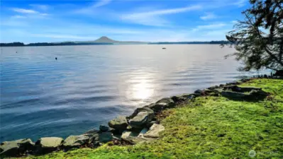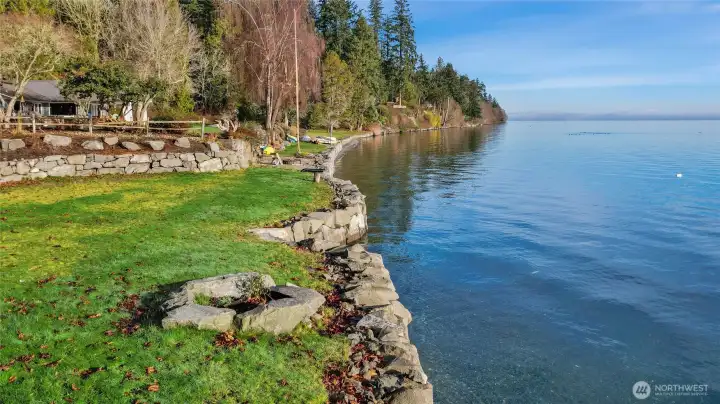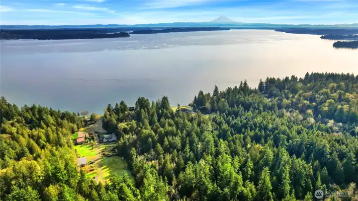 Truly exceptional gently sloping 1.72 acre property on Carr Inlet with sweeping views of Puget Sound and Mt Rainier. Watch the incredible sunrise from your new home site or lounging with your favorite beverage at the beach. Includes a 1/4 deeded share of 104 feet of rare LOW BANK waterfront. Custom bulkhead has stone steps directly to the beach, extensive rockeries, fire pit, beautiful landscaping and a parklike common area with inground sprinklers. Leave your kayaks just steps from the beach at the custom bulkhead. 4-br septic with RV port, water and power is already installed. This permit-ready building site has a shared well and buried conduit for phone and cable. The access road has been freshly graded and repaved, road maintenance agreement is being signed around. Park your RV while you build your dream home or use this gem complete with deck, forest trails, open fields, and great cell reception as a vacation property. The beautiful sandy beach is loaded with clams, sand dollars, and sea creatures! The site is flanked by a mature forest with sequoia, fir, cedar, spruce and huckleberry. This park like community has 3 custom homes at present, make yours the 4th!