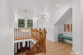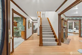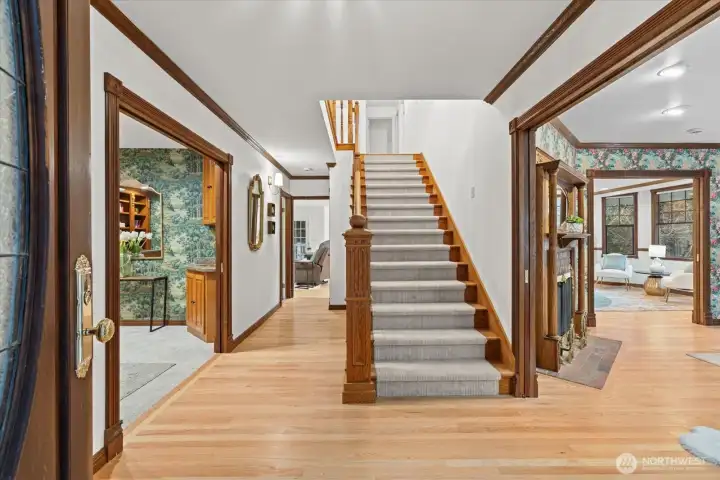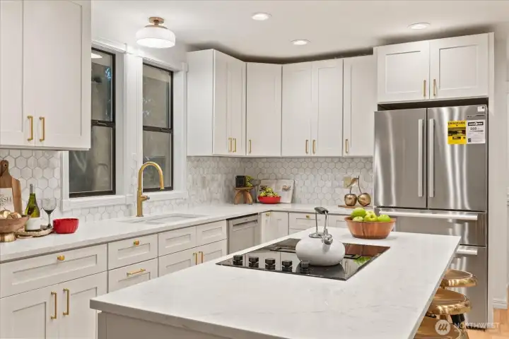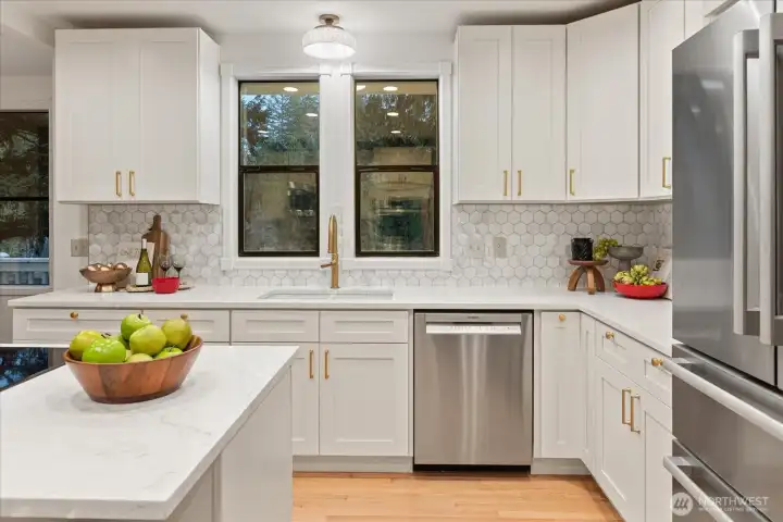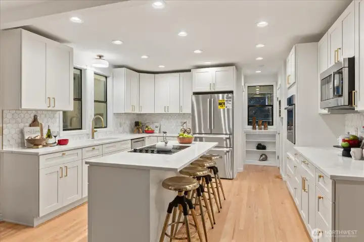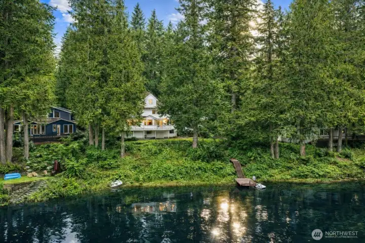 Indulge in exceptional lakefront living in this beautifully custom-built home, gracefully positioned on over an acre within the prestigious gated enclave of Lake Tuck. Designed to showcase tranquil water views, the residence has been extensively refreshed in 2025, offering a seamless blend of classic design and contemporary finishes. Step outside to your private dock and approximately 125 feet of shoreline, where peaceful moments and breathtaking lake vistas become part of daily life. A spacious garage connected by a covered breezeway and featuring a separate home entry provides both functionality and flexibility. Inside, the thoughtfully arranged layout offers an impressive balance of refined formal spaces and open, welcoming areas ideal for gatherings of any size. The upper level includes a luxurious primary suite with a private bath, two guest bedrooms, and a well-appointed hall bath. Hidden behind the main-level library awaits a discreet wine cellar, while the finished third-floor attic delivers an extraordinary bonus space. 2 additional rooms which can be used as bedrooms + office room.The daylight lower level includes a workshop with 220 power, and an expansive deck spans the rear of the home, capturing panoramic lake views. Located within the highly rated Northshore School District. Well managed association! private community! An extraordinary lakefront residence that seamlessly balances elegance, functionality, and natural beauty! glorious raspberry gardens!