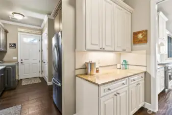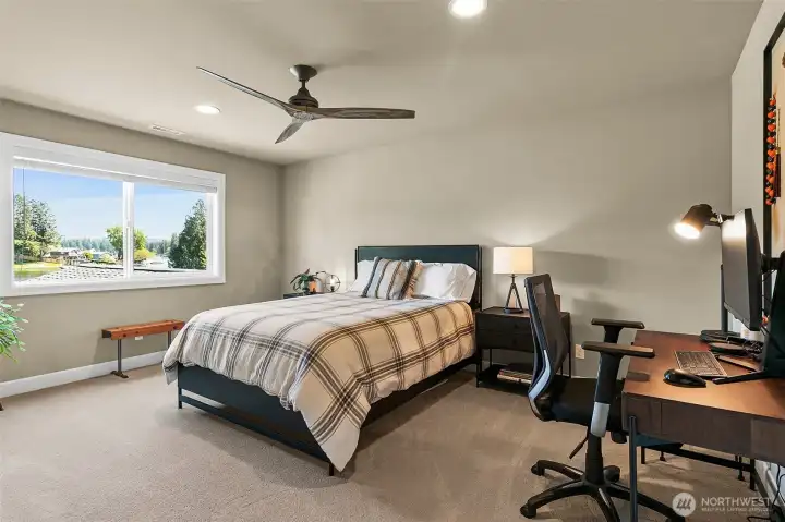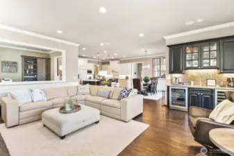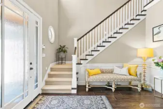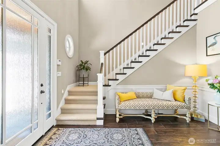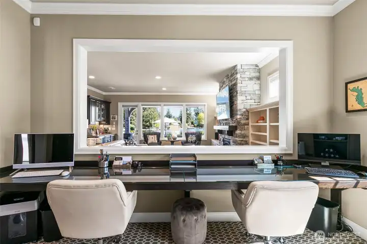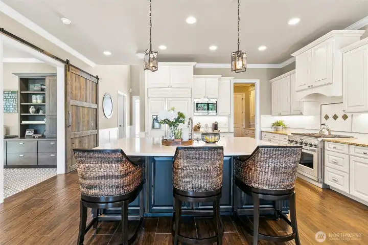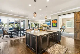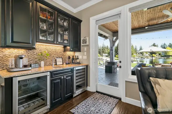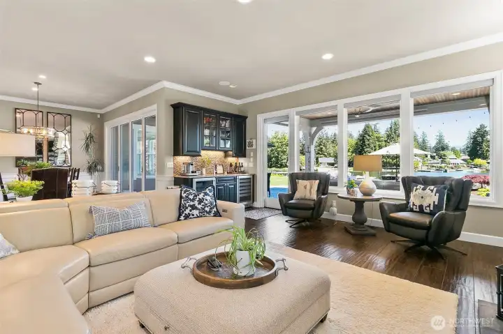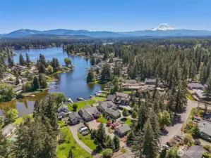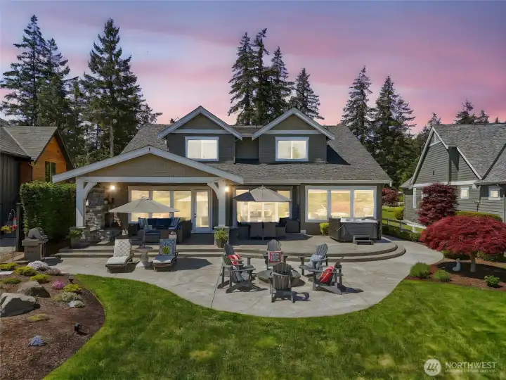Step into refined Lake Sawyer living where timeless design meets modern comfort in this custom built 3,340 sq. ft. retreat. Impeccably maintained and splendidly upgraded, this 4 bedroom, 3.5 bath home offers a blend of elegance, flexibility, and everyday ease that truly elevates fine living. Soaring 10-foot ceilings, custom crown molding, recessed lighting, and a stone fireplace anchor the open concept great room with warmth and sophistication. The chef’s kitchen makes meal prep and entertaining easy and is complete with high end appliances, soft-close cabinets, accent lighting, and a butler’s pantry. A full Nana Glass Wall opens to a covered patio to foster indoor-outdoor living. Radiant heaters, a stone gas fireplace, saltwater hot tub, and built-in fire pit invites year-round enjoyment. Maximize the waterfront lifestyle with a private dock with power/water and an outdoor heated shower nearby. Two main level, en suite primary bedrooms provide exceptional versatility and is ideal for guests or multi-generational living. The main primary suite is a sanctuary with radiant heated floors, spa-quality finishes, and a generous walk-in closet turn daily routines into moments of calm. Main floor den with lake view also makes work from home a breeze. Features galore: stunning grounds, gated driveway, RV pad, EV charger, backup generator, tankless hot heater, and a 4-car garage! Every detail is covered and this home emboldens luxurious and peaceful living in a waterfront setting.